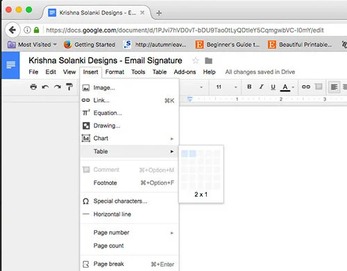 Go to Insert - Table and choose the layout you want. I have done with 1 row and 2 columns, but this can be whatever works best for you.