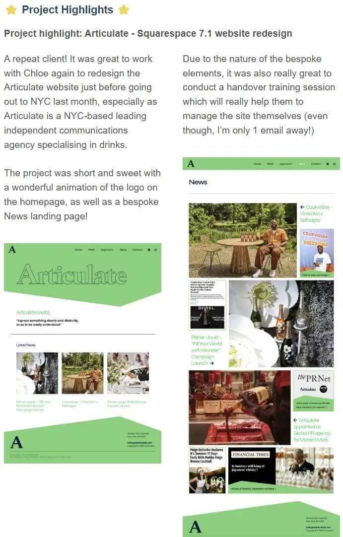 "This month’s Project Highlight is Articulate! It was great to work with Chloe again to redesign the Articulate website. Due to the nature of the bespoke elements, it was also really great to conduct a handover training session which will help them to manage the site themselves"